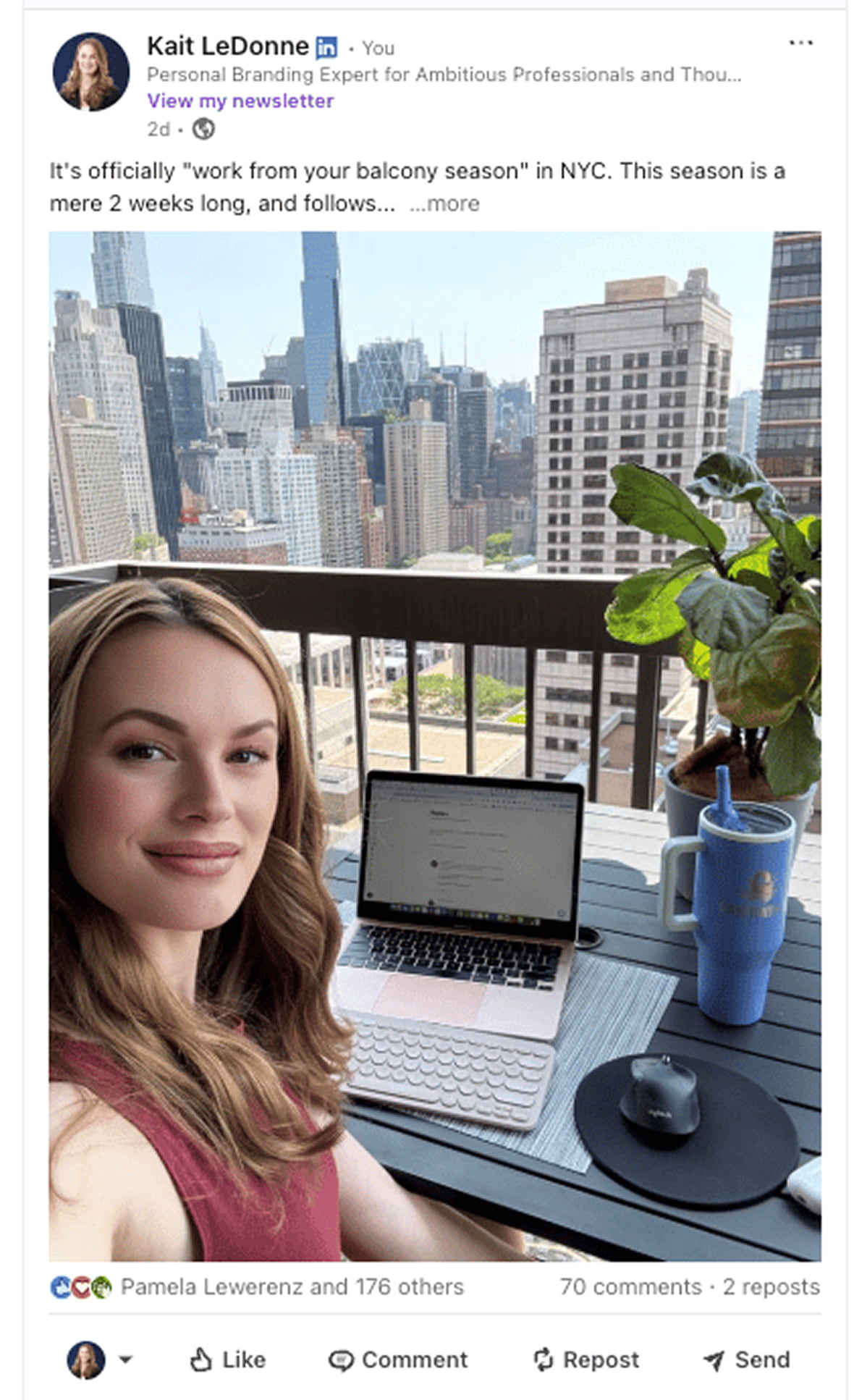 This is content that reflects your personal values and interests. For example, I focus on personal branding, but I'm wildly passionate about living in NYC, and I write a lot of content about it: