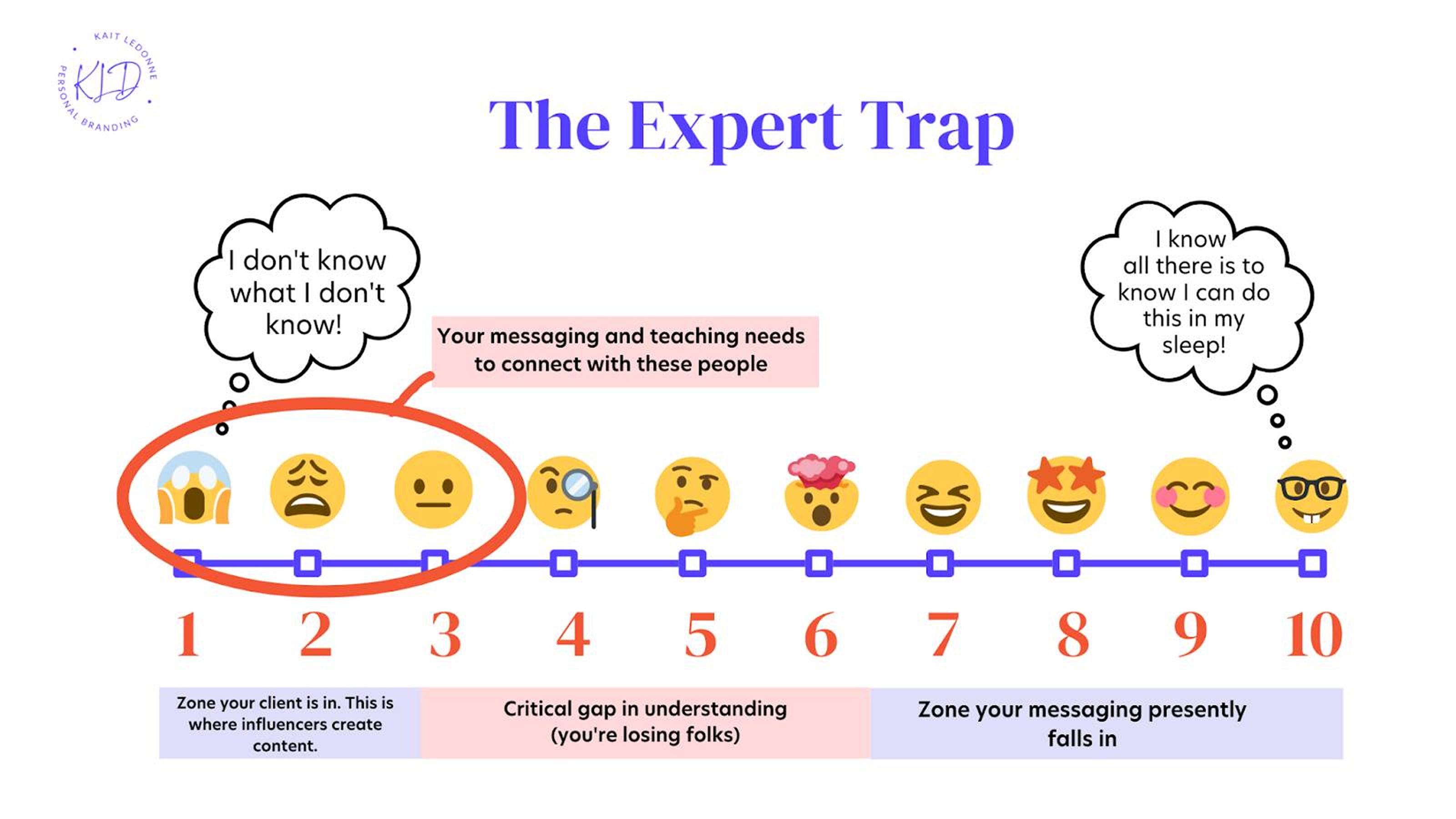 Because they are at the start of the journey, they are only a step or two ahead of your audience. The specificity of their stories and examples closely mirrors where your audience is. Whereas you, my wisened reader, are about ten steps ahead of your audience. And that’s the counterintuitive truth of expertise when it comes to building a personal brand: