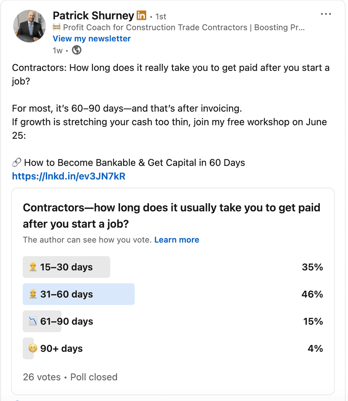 Offer a simple how-to in the “how we” or “how I” frame that solves a pressing industry pain point in three actionable steps. Think “How we reduced onboarding time from 30 days to 10: the process my team implemented last quarter.” Provide enough clarity to be useful, but leave room for follow-up discussion in the comments.