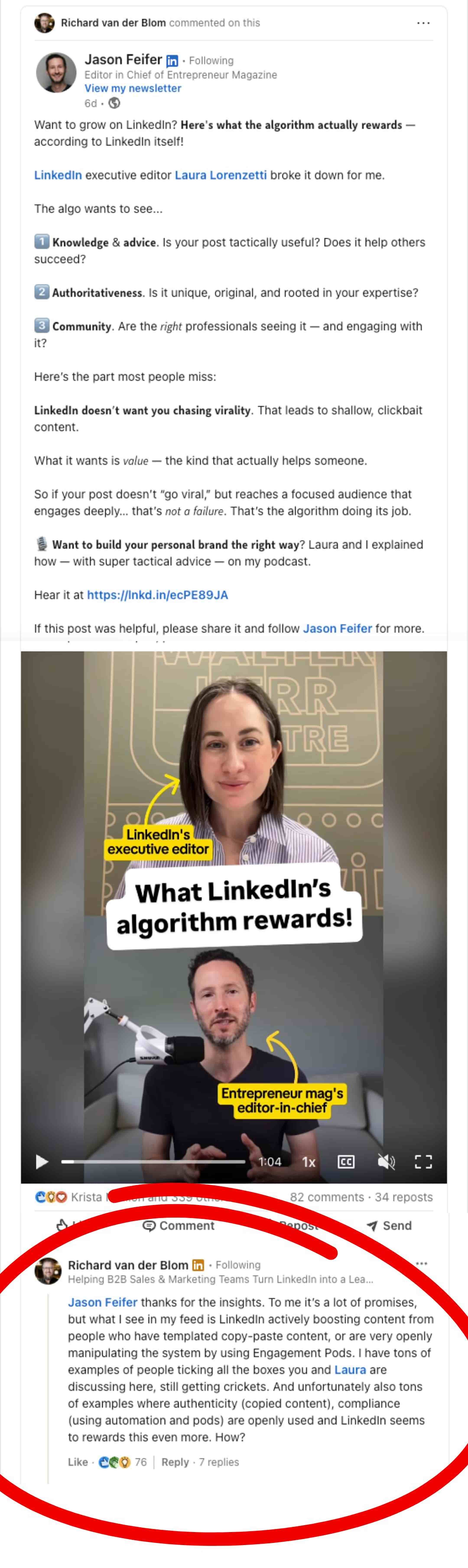 So, in a world where LinkedIn’s new algorithm supposedly rewards content that sparks thoughtful dialogue and keeps readers scrolling for longer periods by looking if posts are unique, original, and tactically useful… check these boxes (As Jason wrote above).