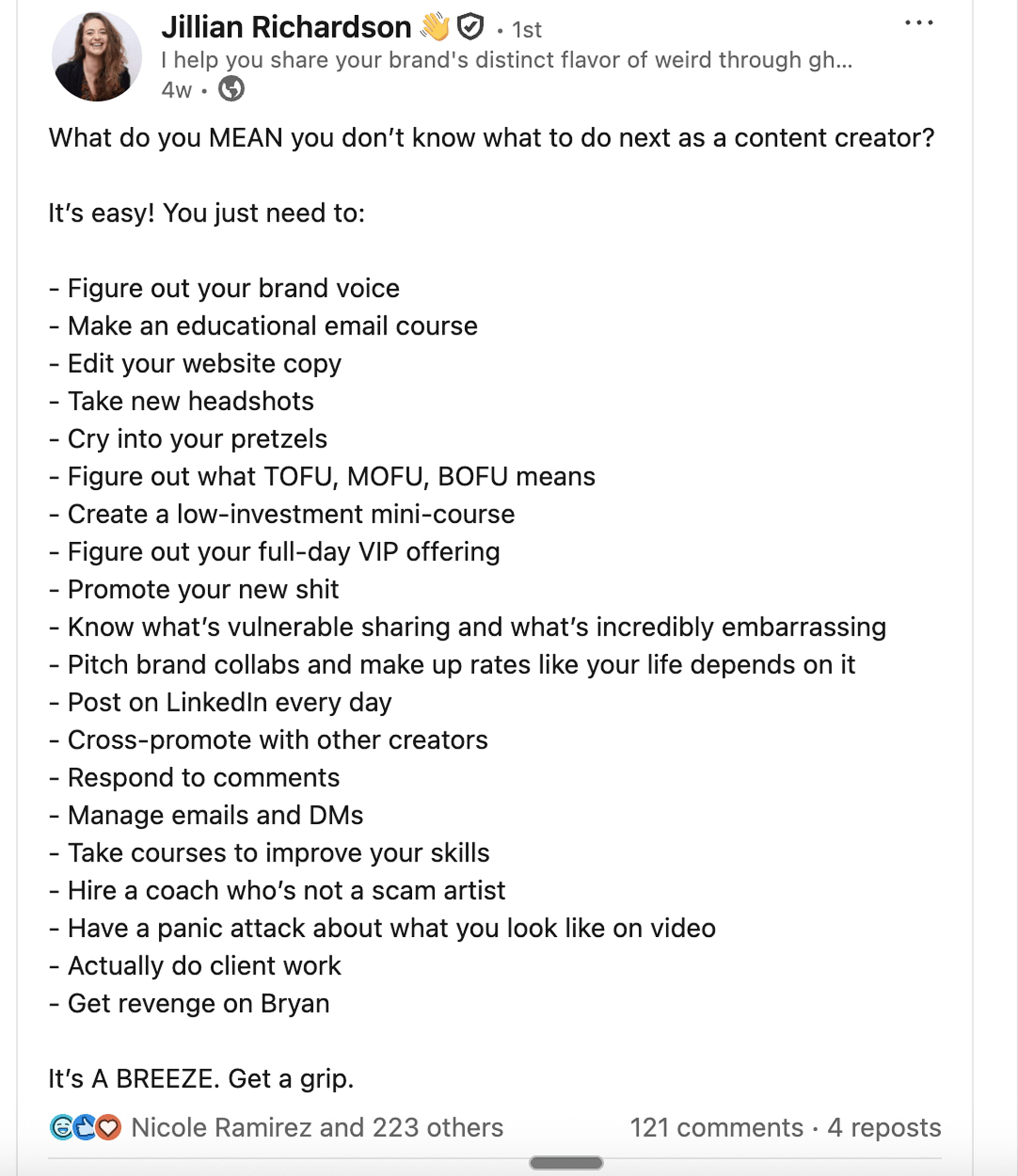 For more tee hee’s, follow Jillian. She’s one of my fav rising LinkedIn creators.